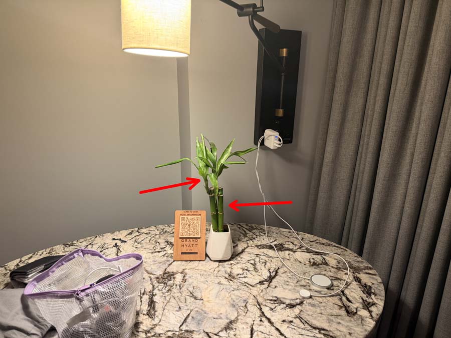 The hotel is pretty new, VERY convenient, but inexplicably for the price and the fact that it is a 5 star hotel there was absolutely NOTHING to eat or drink in the mini-bar in the hotel room. Instead, there was this one lone, sad plant in the room. That was the only non-utilitarian pointless item in the room. The plant you see below. I have no idea why a plant is more important than a bag of chips to leave in the room?