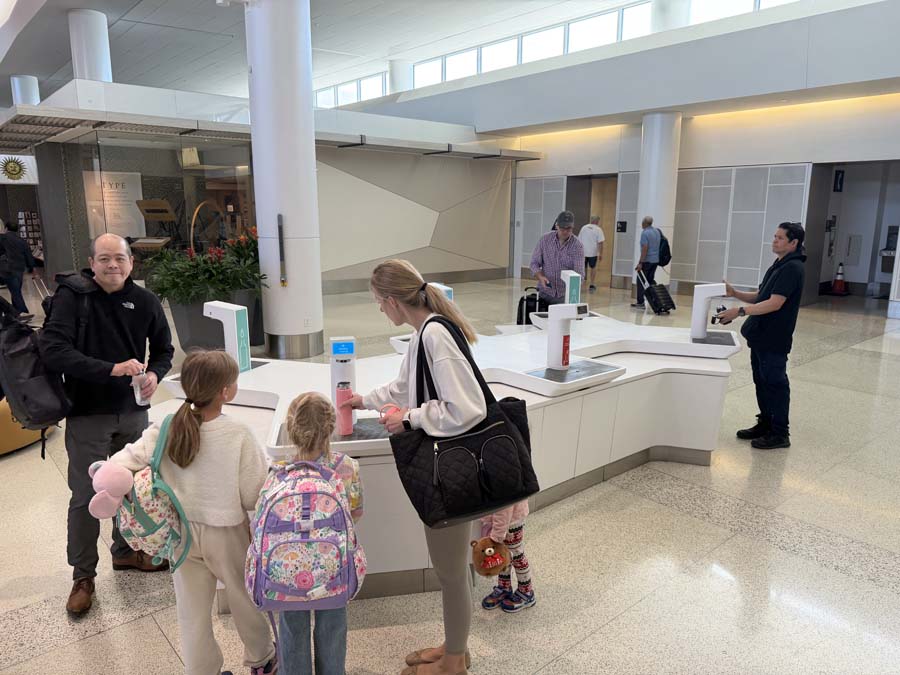 Once I was past TSA security, SFO has this pleasant water refill station for water bottles. This is new since the last time I flew out of SFO.