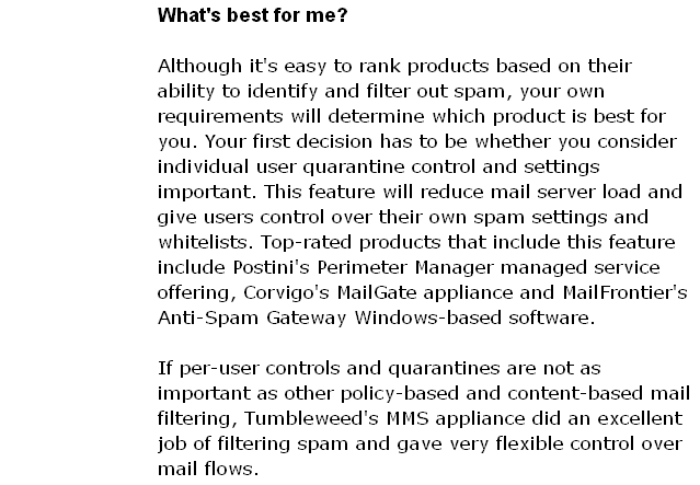 On Monday, 9/15/03 MailFrontier was reviewed in Network World. Below is the article. Also click here for their testing methodology. Click ****HERE**** for a scanned image of the front cover of the hard-copy NetworkWorld magazine on which MailFrontier makes the front page.