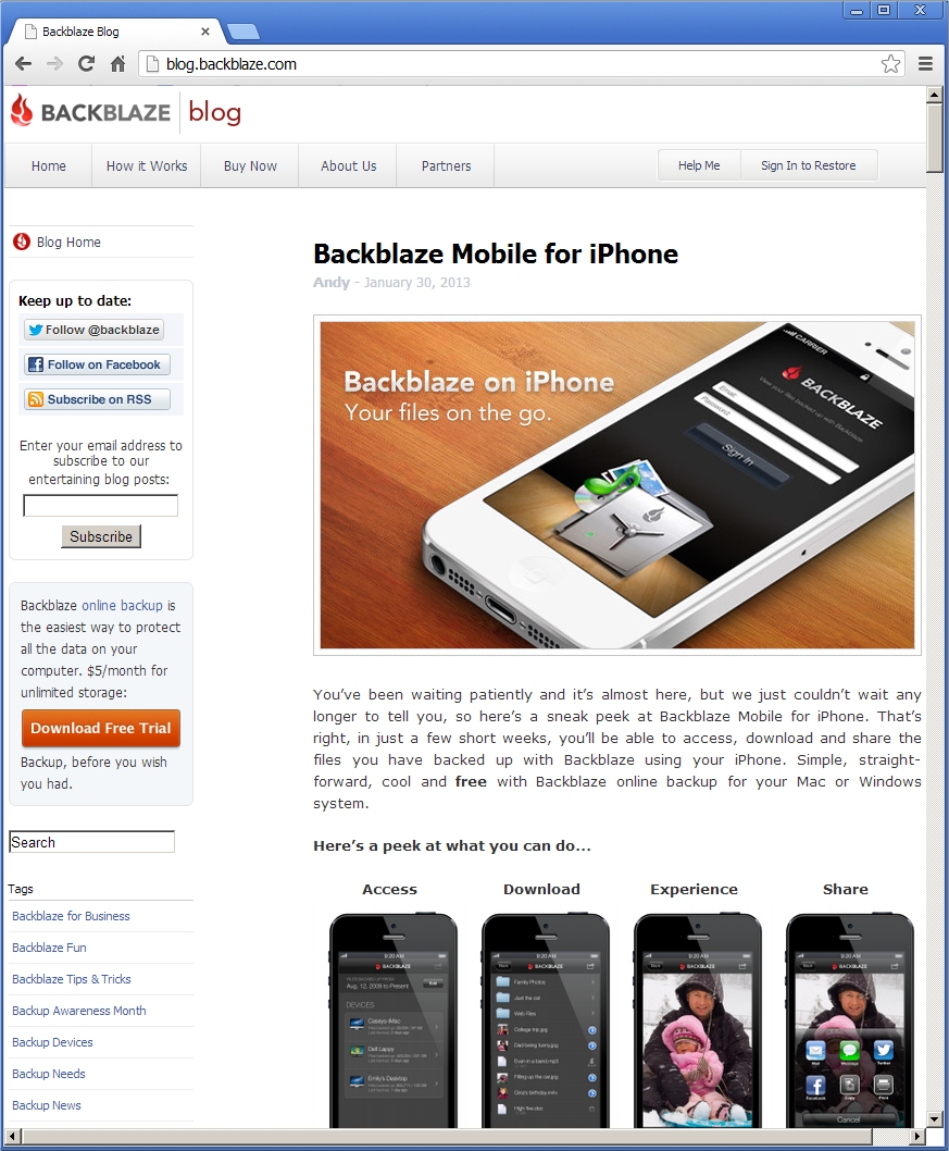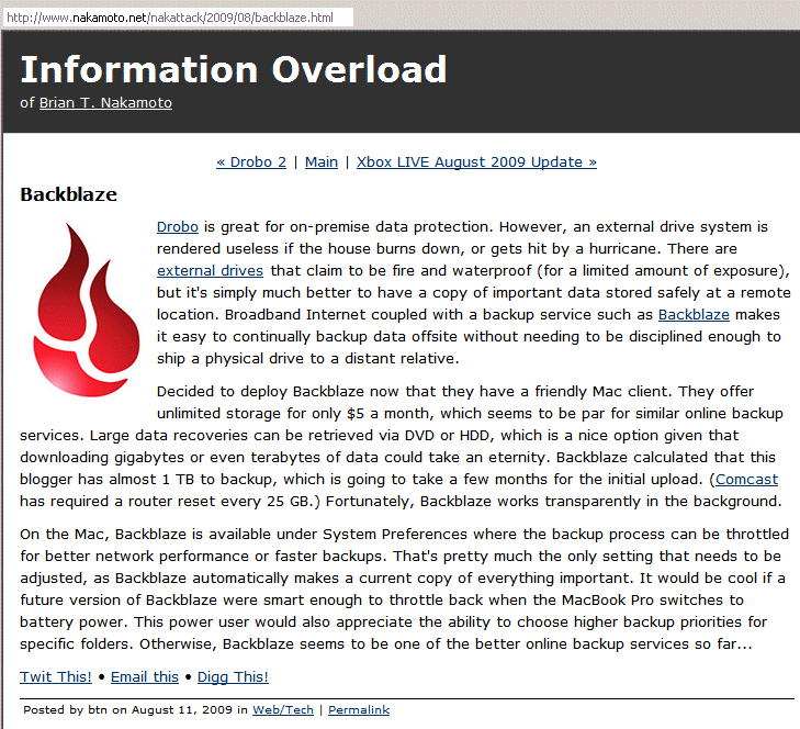 4/30/08 - Wednesday - 10:52am - Backblaze "friends and family beta" starts when Brian sends a beta invite email to Brian Beach. Brian Beach installs and gives feedback about throttling not working (it wasn't implemented yet :-).