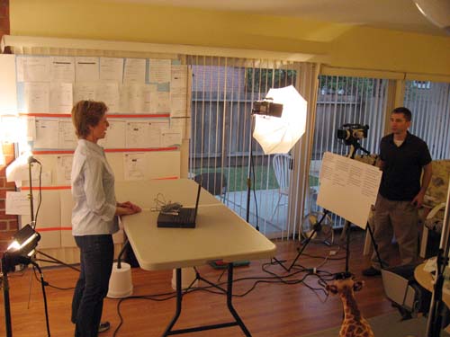 1/29/08 - Tuesday night - Casey and Gleb shot the homepage flash video for the Beta launch. Cara Panebianco (friend) played the spokes model. Below they are setting up the shot.