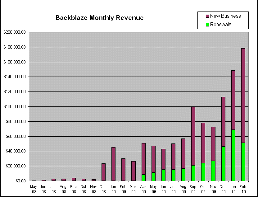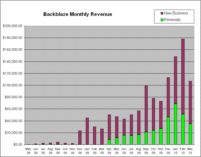 9/15/08 - Monday - the day before the 1.0 Launch, the Backblaze lifetime customer revenue (from 5/1/08 - 9/15/08) is about $5,000. This is all for "beta software".