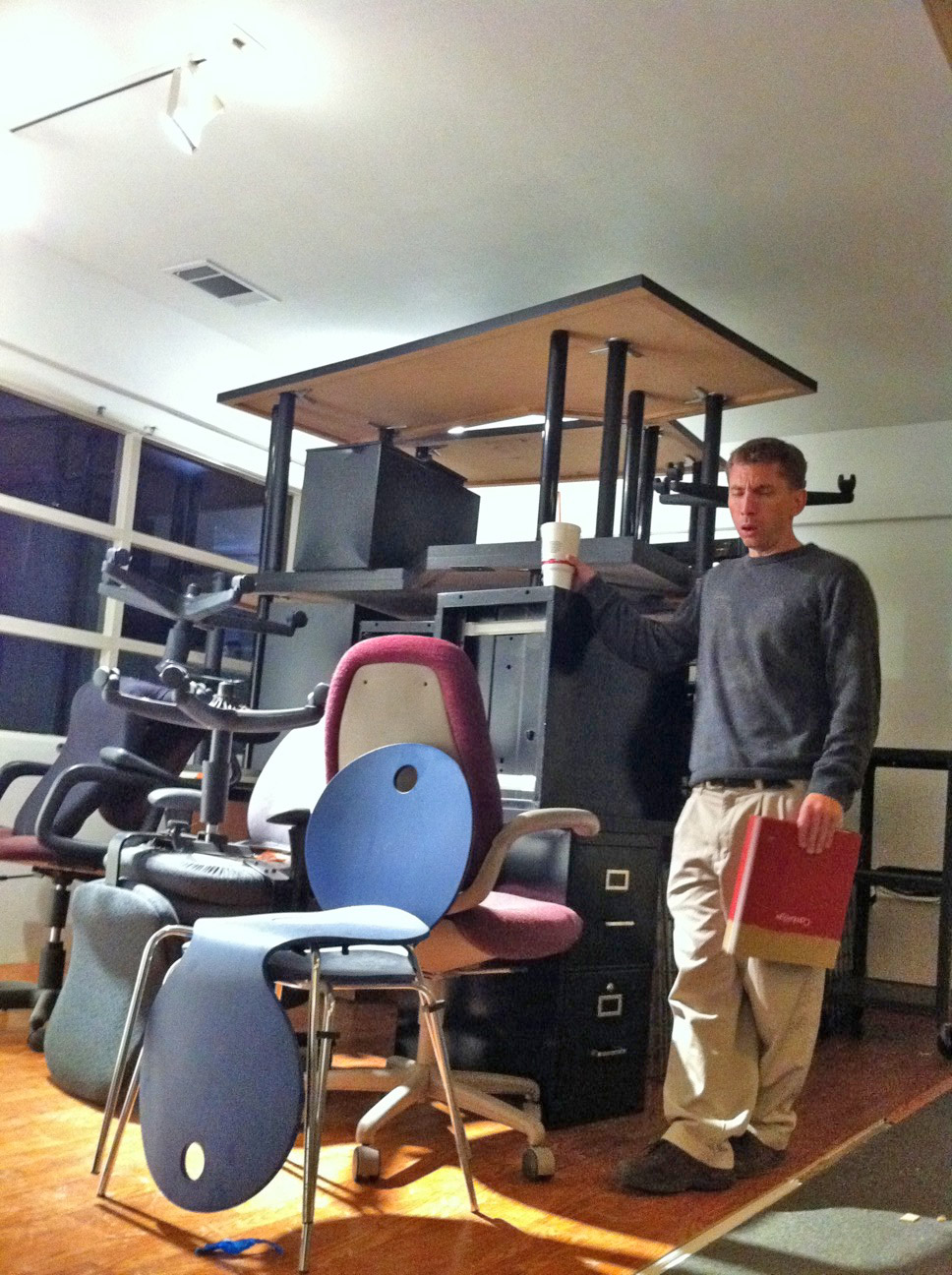 8/27/07 - Monday - Casey Jones starts full time at Backblaze World Wide Headquarters. See Casey assembling his own office furniture below: