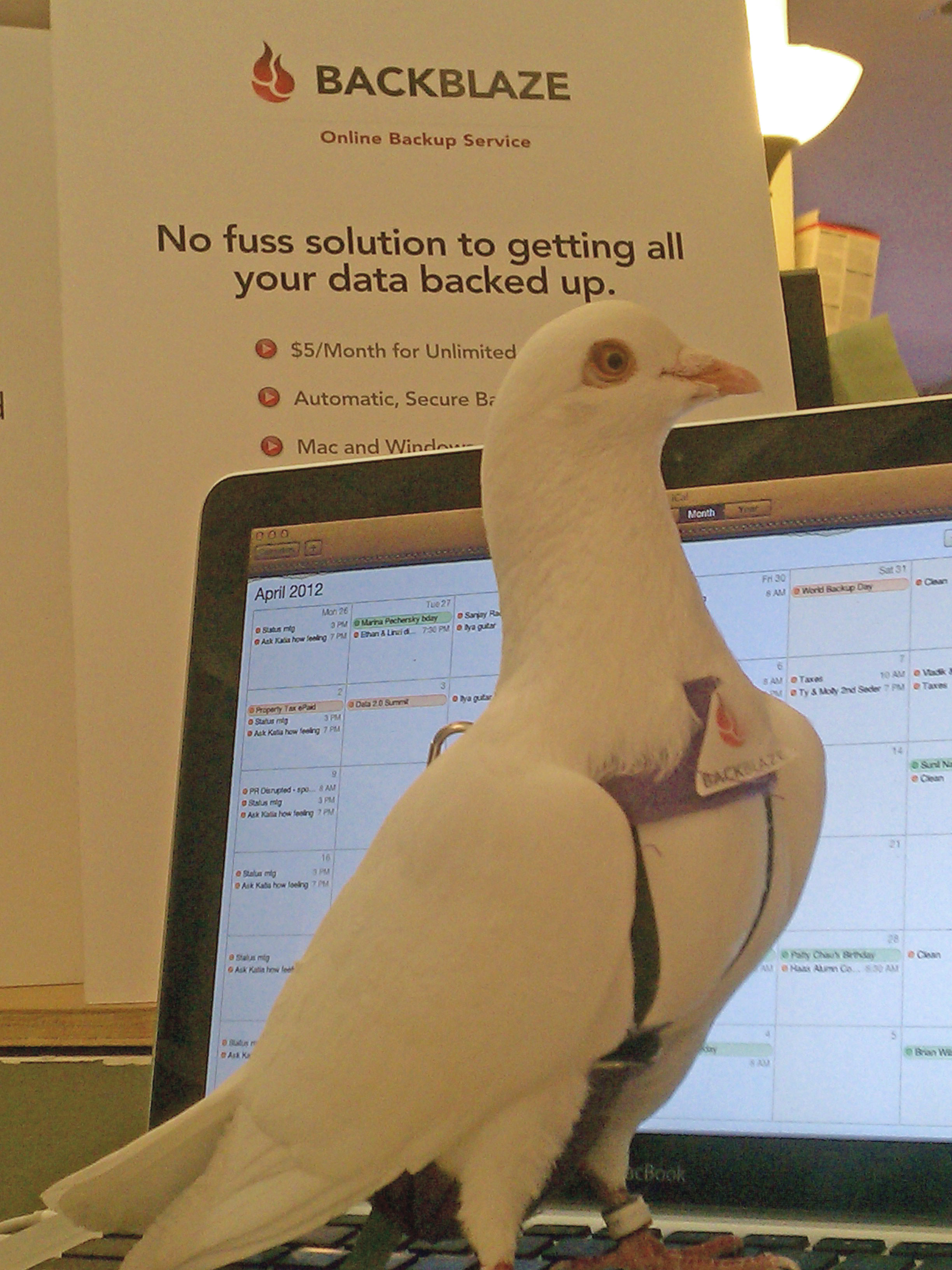 2/05/08 - Tuesday - Gleb's laptop dies, on boot he gets blue screen of death, unrecoverable, and therefore he became the FIRST PERSON EVER to restore a completely irrecoverable file "in the field, without any other recovery choice" from the Backblaze online system. It was accidental -> he was backing up to the "corpstage" server, but he recovered his Outlook calendar events from corpstage.