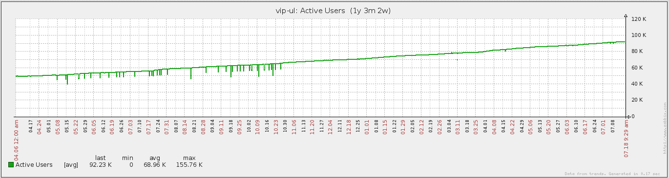 5/13/08 - Tuesday - Billy brings online the "stats portal" which reports we have about 50 customers running the product, 4 are "paid", 46 in trial.