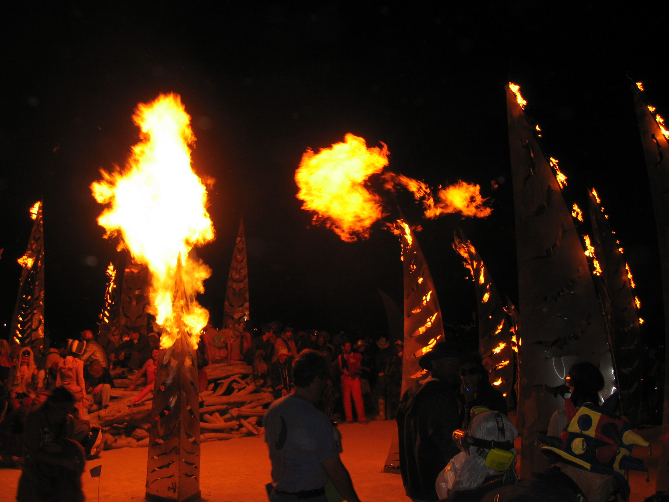 Another post erupting in flame, VERY cool, very exciting. At night you get this burst of light, a huge wave of heat, and a big feeling of how powerful this piece of art is.
