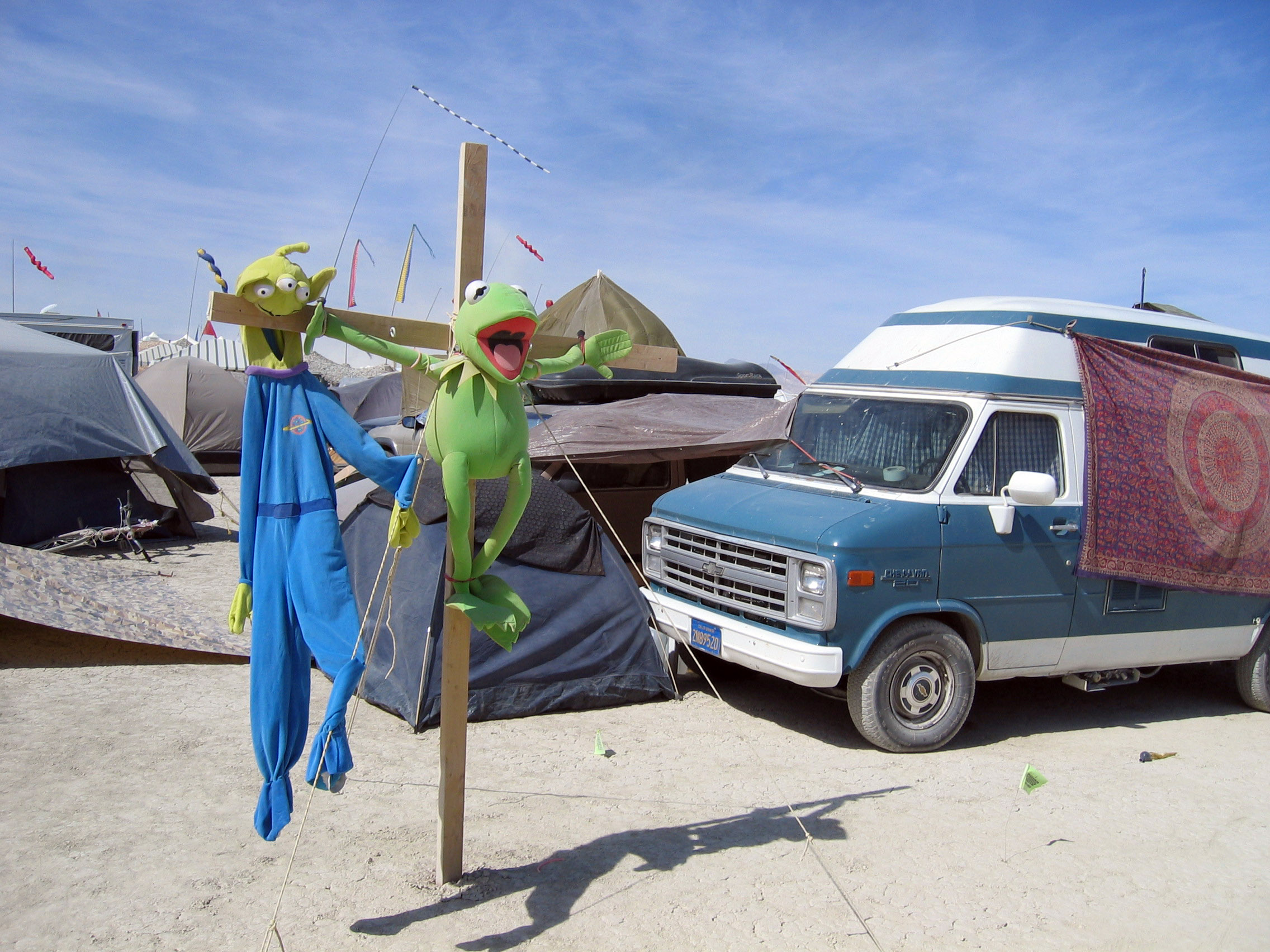 In a corner of a random camp, Kermit the Frog was being crucified. Stuff like this is ALL OVER, you can't open your eyes without seeing something funny, interesting, or unique.