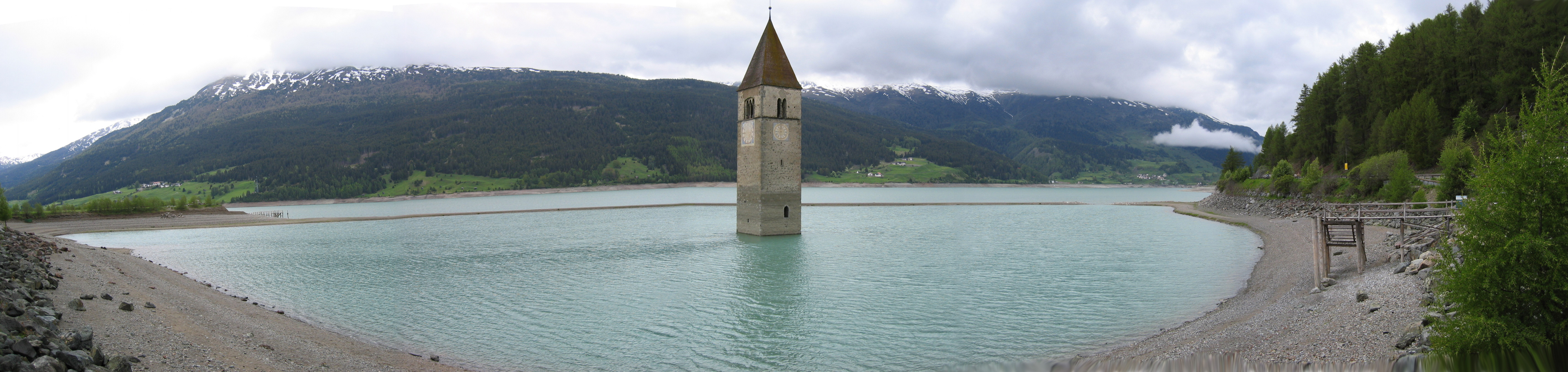 We were looking for this. It's a church that is submerged under water. They decided to make this man-made lake, and they didn't move the church (or the town, the rest of the submerged town is at the bottom of the lake).