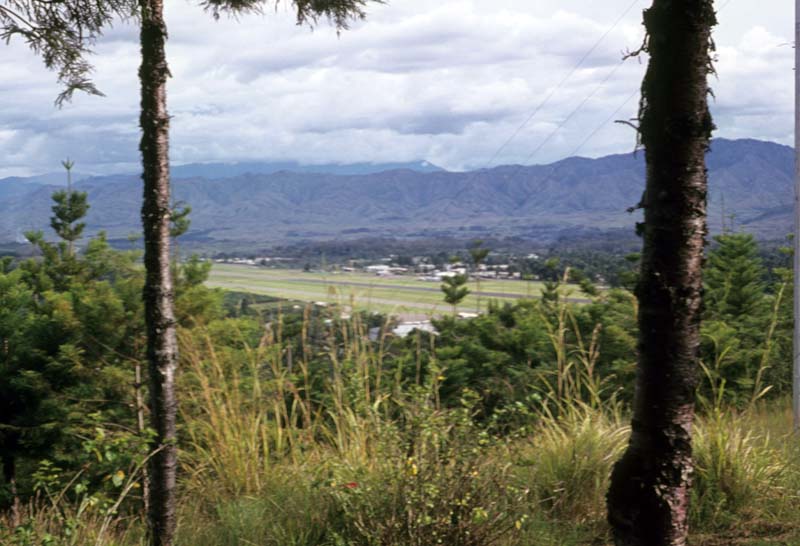"Goroka from above Minogere, a suburb of Goroka." Notice the airport runway to the left.